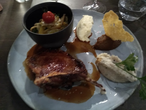 Read moreTrès bon repas, dommage que le service laisse à désirer. En arrivant l'accueil était froid, au vu du standing que veut se donner le restau, la serveuse nous dit bonjour et reste planter devant nous comme si elle attendait un visa ou nos papiers... On annonce que nous avons réservé, elle nous répond oui pour 2 personnes et elle part sans nous demander de la suivre. Nous sommes installer derrière un géant pot ou trône un Yuka. J'ai cru que j'étais puni...aucun nettoyage de la table avant d'installer les set de tables.... Viennent les menus, nous prénom le temps de choisir mais au moment de commander il n'y a plus de gravelax de saumons, remplacé par du saumon fumé (service de 20h15...), nous demandons si nous pouvions avoir des frites à la place de l'ecraséheu de pommeuh de terrrre au chorizzzzo. Elle repond:", oui je note je note... (c'est un ni oui ni non ?) Nous mangeons, c'est quand même très bon. Arrive le moment du dessert, plus d'entremet choco framboise remplacé par choco caramel très bon aussi mais bon. Ma femme demande une coupe glace avec sa farandoleuh de frouit, on lui apporte une coupe de glace ressemblant aux selles de milou prétextant que la commande fruit n'a pas était honorer (enlever le de la carte bordel ! Et même, vous connaissez pas grand frais ?) C'est vraiment frustrant de lire une carte 5 fois pour qu'à la fin, on vous serve les fonds de frigo. Changer la carte parceque ça devient de la publicité mensongère. Je répète merci au chef c'était très bon mais les serveuses vous n'avez pas assuré. Enfin pour le standing terrasse d'hôtel 3etoiles changez ces chaises qui sont faites pour les bords de piscines pas pour manger confortablement. Pensez aussi à investir sur des nappes et serviette en tissus. Standing kebab à 58€ ça fait cher payé. Sur ce au revoir à jamais Bon courage à la jeune serveuse super polie qui n'a rien pu faire face aux 2 autres serveuses de resto- routier ou d'ailleurs l'accueil est ...