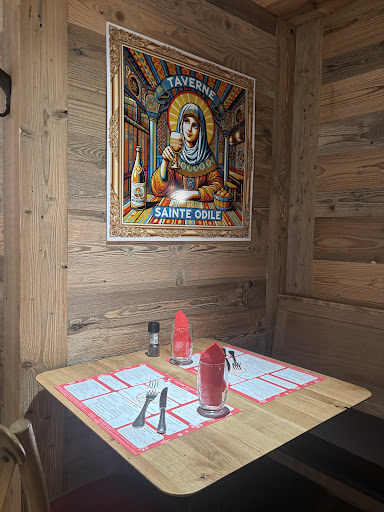 We had a drink at the Taverne Sainte Odile on the previous evening before going elsewhere to eat, the waitress who served us was polite and friendly. On the evening of our visit, we had stopped for another drink but decided to stay and eat at the restaurant (without checking the reviews) an hour later, too, as the town of Obernai was quite busy due to the 15th Obernai Music Festival. We arranged this with the serving staff and at the agreed time we requested a menu. The menu was a short, limited menu on account of the Music Festival and I ordered the entrecote steak, my partner ordered the spaghetti with prawns. The steak was almost completely inedible, consisting as it did of 80% mainly connective tissue and tendons. I had to ask three times for the salad to accompany my steak. The ‘frites’ with the steak tasted as if the cooking oil had gone rancid – despite this, having cycled all day, I ate them to keep up my blood sugar. My partner’s spaghetti and prawns were overcooked. When I pointed out the inedible steak to the waitress, she quite rightly said that she was there to serve customers and she was not the cook but she would return it to the cook. The waitress then came back with the offer of a free desert or digestive drink – I declined both but this was an admission that the steak was not good. At the table alongside us another group of customers expressed that they, too, were dissatisfied with the steak.