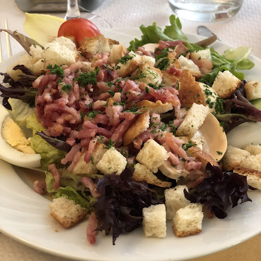 Absolutely heavenly food at a very fair price! We came twice on a two-day hiking tour in this area-evenings were reserved for the incredible taste experience here! We had: Entrecôte, Hamburger Séléstadien (just because;-) and their famous Bouchée à la Reine (fine light sauce of veal & chicken filled puff pastry mini towers) served with noodles...and a warm goat cheese salad; incroyable! We were there twice, remember 😉 Oh, and, the service-very forthcoming and attentive, just right; with a very timely and tactful manner! Somehow amazingly, we noticed they could speak the languages of their guests, and were willing to. Not necessarily to be taken for granted in small picturesque...