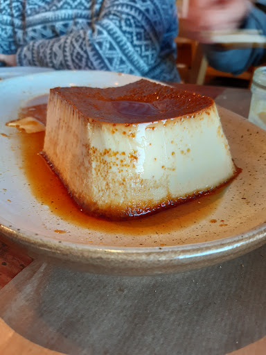 Arrivés au dessert, nos estomacs n'en peuvent plus et nous demandons un doggy bag pour ce dessert (au départ on demande si on peut le manger plus tard sachant qu’on passe la journée là-bas puis voyant que ça pose un problème de vaisselle on apporte notre propre vaisselle). Légalement depuis 2021 les restaurants sont obligés de proposer cette option pour un repas non fini et payé (ce qui était le cas ici car c'était un menu).