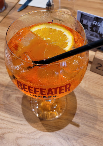 Read moreNous sommes venu un samedi midi, pour le service de 13h. Le serveur de notre table à été très bienveillant, il est revenu régulièrement voir si on avais choisis. J'ai pris un virgin spritz en aperitif (5.5€),qui était très bon. Puis menu stephanois (28€) composé de : Salade Forezienne, très bonne salade, portion normale, découverte du très bon fromage de "fourme". Râpée Burger avec frite et salade. Portion copieuse, le Burger n'a pas de pain, mais deux "râpés", des genres de rostis spécialité de la région, la viande était saignante respectant ce que j'avais demandé. Très bon burger, et plat de manière générale. Brioche Perdue, ça avais la texture d'un flan, et un goût assez proche. Très bonnes saveur, avec de la glace à la vanille et de la chantilly.