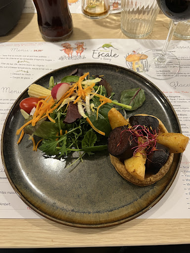 Read moreDe passage dans le charmant village de Roisey en moto, nous avons fait une halte déjeuner à l Escale. Une terrasse ombragée nous attend sous une forte chaleur 🍺. On nous sert de la bière blanche qui est très rafraîchissante. Pour le repas, proposition du menu à 16€ : entrée, plat et dessert. Cassolette d oeuf, raie ratatouille, pois cassés ou pignons de poulet sauce curry accompagnés des légumes précédents. En dessert nous optons pour 2 boules de glace... Le choix des vins est très correct. Café et Jet. Le tout pour à peine 25€ par personne 👍 Nous retenons que le service est rapide, aucune attente, et une attention particulière est portée auprès de chaque table. L intérieur de la salle du restaurant est soignée et tendance. Nous reviendrons avec...