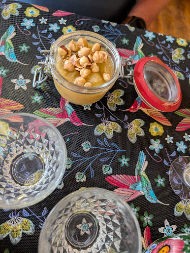 Read moreLe cadre se fond dans une décoration très reussie. J'ai fait un bon de 40ans en arrière avec l'ambiance retro : dans les couleurs, la deco et dans la vaiselle. J'AI AIMÉ ! L'accueil est souriant. La cuisine est au centre du lieu. Tout est organisé. Pas de stress. Laurent et Laurence savent gérer et chacun sa place. Pourtant il y a du monde. La cuisine est bonne. Bien assaisonnée. Le goût maison est là. Quand au dessert, si j' étais plutôt dubitative dans mon choix, dès la première bouchée j'ai découvert et me suis régalée. Panacota version snickers. Cest aussi ça la cuisine découvrir. Je recommande vous ne...
