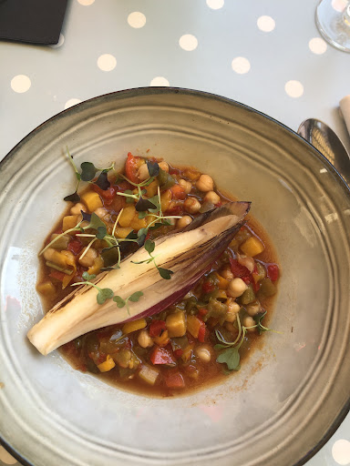 Read moreLieux sympathique. Dommage que le service soit si rapide . On est venu un dimanche on a le temps et on aurait aimé prendre un deuxième apéritif par exemple. Coter cuisine c'est très Personnel comme avis mais trop d'agrumes dans la salade de homard. Je n'avais que les agrumes en bouche . Et pour le plat les gambas était bcp bcp trop cuite c'est dommage. Quand au risotto il était à la limite de la sous cuisson . Mais cela reste très personnel. Le dessert était frais léger et pas trop sucrer . Parfait pour finir le repas . Sinon salle très bruyante mais le cadre y est bien . Dommage aussi que les serveuse trop presser nous proposent pas le digestif car on en aurait bien pris un . Mais on pas demander car déjà on a demander le café et on a eu l'impression...