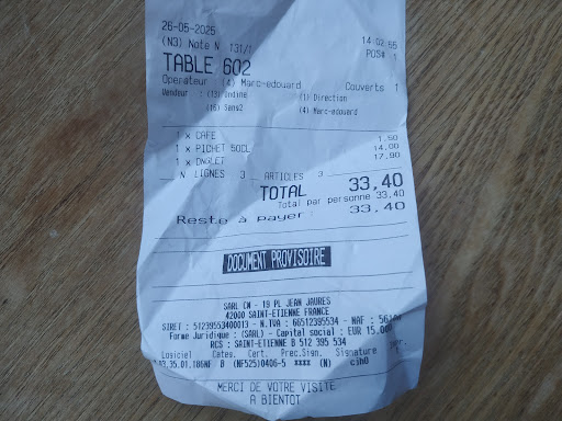 Read moreBonsoir pour ma part, très mauvaise expérience. Arrivé la table sale, pas de glaces en plein mois d'août. Alors nous avons commander une pina colada sans alcool. Nous avons demandé des serviettes car servit sans serviettes. Le nouveau concept est d'aller soit même après avoir été servi et avoir réglé l'addition récupérer une serviette à l'intérieur. Le serveur à refuser et nous a invité à se diriger dans le café. Et la fameuse pinacolada censé être un cocktail est servi dans un verre à jus d'orange. Bien dommage en plus c'était plus un jus d'ananas discount qu'autre chose. 18 euros pour 2 verres sachant que le prix est de 8 euros. Donc comme ça on se rajoute des 2 euros normal !! Pas grave on a payé juste pour que ils sachent que nous ne sommes pas dupes.. L'accueil et l'attention client c'est la base, surtout quand on à envie de donner pourboire mais qu'on est reçu comme ça... Le serveur à la limite du désagréable et pourtant sourire et formule de politesses lui ont été envoyé mainte fois. on à bus le truc vite fait bien fait.. et on est partis voir ailleurs. C'est pas la première fois.. mais bien...
