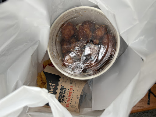 Franchement, grosse déception. Déjà à la commande plusieurs choses manquaient. Puis le pain du burger n’était pas du tout solide, il partait en morceaux et j’ai fini avec les mains toutes sales, ça m’a dégoûté. Les sotteok, une petite brochette minuscule à 4 €… et du poulet minuscule également alors que sur le menu, la photo donne envie avec des portions qui paraissent bien plus généreuses. Franchement, c’est abusé vous venez d’ouvrir et vos prix sont déjà exorbitants, alors que la quantité comme la qualité ne suivent pas. J’ai déjà mangé en Corée, et ce que vous proposez n’a rien à voir avec de la street food coréenne que ce soit niveau prix, qualité ou quantité. Et je ne parle même pas des toilettes et la sale à manger pas entretenues et sales j’imagine pas la cuisine… même l’ambiance était pas présente avec tous ces enfant qui criaient bref très déçu. Améliorer cela sinon votre...
