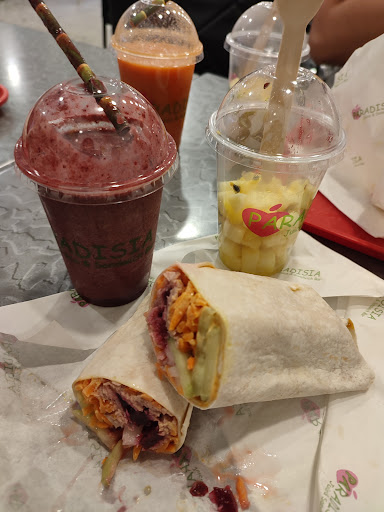 Très très déçu, (Je met 1 étoile mais si j’en avait la possibilité j’e. Mettrait 0) Sortant du travaille avec mon amie nous avons voulu tester Paradisia (ce qui a été une très mauvaise idée). En effet le serveur était plus préoccupé a s’occuper d’autre chose qu’a prendre notre commande, très hautain (ne connaissant pas le concept ) il nous expliquait avec un air dédaigneux. Pour ce qui est des produits : les « smoothies » car je pense que j’appellerais ça plutôt des « jus d’orange » car oui sur deux smoothie (l’un parfum coco et l’autre mur) les deux avait le goût du jus d’orange et rien d’autre. Enfin les bagels était bon ... sur le moment mais malheureusement à l’heure actuelle où j’ écrit cette avis j’ai fait une indigestion à cause de celui-ci. Je suis Extrêmement déçu et je ne conseille absolument pas ce restaurant où l’hygiène laisse à désirer et où la fraîcheur des produits reste introuvable voir même inexistante.