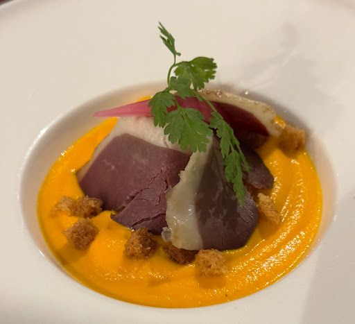 Read morePointe de déception Nous voulions tester après les nombreux avis positifs. L’ambiance de la salle est très agréable et les fauteuils confortable mais l’accueil des serveurs a été peu chaleureux dans un premier temps Le service en global est plutôt bien cadencé, les plats sont bien présentés et servis à bonne température Petit plus quand on vous re présente ce qu’ils contiennent l’amuse bouche de boudin noir était excellente ainsi que le magret de canard Le fond sonore est très agréable et ne prend pas le dessus des conversations