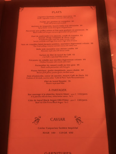 Read moreWe loved every beat of it, from our Tahitian waitress, very attentive, elegant, and efficient to our host we had the pleasure to meet with, M. Stephane. Very often in the French Brasserie that becomes festive throughout the night, the food is sometimes so, so. Not HERE! One of our favorite dining experiences during our stay! The escargot, pata negra, and Os a Moelle were just memorable. The sole meuniere was just to the T. The sommelier was excellent at helping us with our wine pairing. Last but also delicious to make a nice print of that evening, was the entertainment! It went so perfectly, we could have a dinner talk with our friends, listening to some European grand classic until it tuned up. The trio DJ, a guitarist, and a beautiful blond vocalist was amazing. A night of brasserie with a cabaret feel with an amazing culinary...