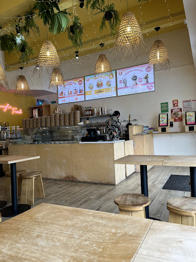 Après avoir été tannée par ma fille, dont toutes les copines lui vendaient du rêve avec cette boutique, j'ai fini par céder et l'y amener. J'ai trouvé ça relativement cher, mais ça peut rester compréhensible. Par contre dans la boutique, pour un concept "jeune", pas un sourire, on est invitées à prendre commande sur tablette alors même qu'il n'y avait personne, bref, on fait nos choix, on part sur des bubble tea, on paye. Préparation de notre commande, la vendeuse les finit et nous les tend comme si elle était au bout de sa vie. L'attente (très courte) fût atroce, musique beaucoup trop forte !! Et pour un résultat qui est beaucoup beaucoup trop sucré, première fois que ma gorge me pique tellement c'est trop. J'ai essayé de boire quelques gorgées mais c'était vraiment infecte, je commençais à me sentir mal, j'ai préféré jeter mon gobelet qui était quasiment plein. Je ne doute pas que ma fille y retournera avec des amies, mais cela me questionne réellement. En tant que mère, voire autant de jeunes collégiens boire ces boissons m'interroge, je pense que cela peut vraiment être dangereux ! Ma fille qui avait pris l'option "un peu sucré", cela l'était déjà beaucoup, je n'ose imaginer le goût des options proposées "très sucré". Les poké ball ont l'air sympa pour le coup, je ne sais pas...