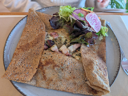 Cute space and the owner is friendly but despite being open doesn’t want to serve full menu options. The basic galettes have unimaginative and bland fillings. The fromage and legumes Provençal tastes like emmental with jarred...