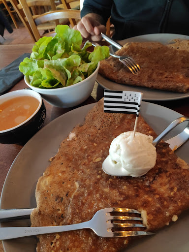 L'accueil est bien trop chaleureux pour que les galettes soit bonnes... mais malheureusement elles le sont aussi ! Une carte bien trop petite... je voudrais une dizaine de pages de leur idées et créations ! Une glace au fromage de chèvre dans une galette ?! Mais quelle atteinte à mon morne classicisme ! Comment osez-vous me faire découvrir des délices pareil ? Comment je fais moi après pour diner correctement chez moi mes fades coquillettes au jambon?