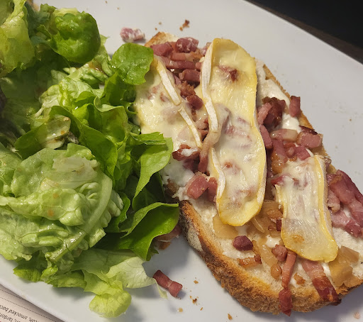 La tartine "À l'ancienne" (à la moutarde à l'ancienne) était avec confirmation du serveur avec une moutarde classique (amora en tube visible depuis la salle du restaurant), c'est dommage de ne l'avoir su qu'au moment de régler la note.
