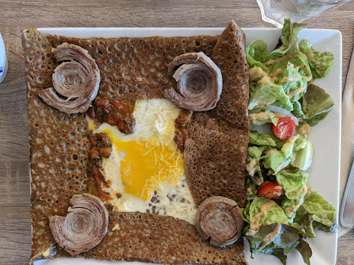 Read moreCrêperie sympathique, les produits et plats proposés sont bons mais sont loin de valoir le prix demandé. Un menu enfant à 9.50 euros qui comprend une boisson au verre et non en bouteille, une omelette un petit paquet de chips et UNE boule de glace ou une crêpe au sucre (un supplément est demandé pour tout autre ingrédient comme nutella chocolat confiture...etc). Le prix du menu enfant est très onéreux par rapport à ce qui est proposé !