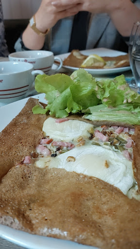 Read moreLes galettes sont assez bonnes, pas exceptionnelles mais correctes mais l'accueil est exécrable. Quand on est arrivé pour savoir si on pouvait déjeuner, on nous a dit sèchement que c'était possible mais uniquement à l'extérieur. On a dit OK mais quand on s'est retrouvé dehors, sur un trottoir en fait, il ne restait qu'une petite table en plein soleil. Il y avait des parasols au dessus de la table d'à côté mais ils ne nous ont pas autorisés à les orienter. On a alors décalé un peu la table pour profiter du parasol en laissant un espace de plus d'un mètre pour le passage mais la serveuse est venu nous demander de la remettre là oû elle étair prétextant qu'il fallait laisser suffisamment de passage pour laisser passer les gens ce qui était pourtant largemenr le cas. Comme il faisait très chaud, on espérait un service rapide.Après avoir passé commande, Ils nous ont laissé cuire 45 minutes au soleil pour nous apporter la galette à table. Par ailleurs, l'accueil a éte très désagréable et agressif....