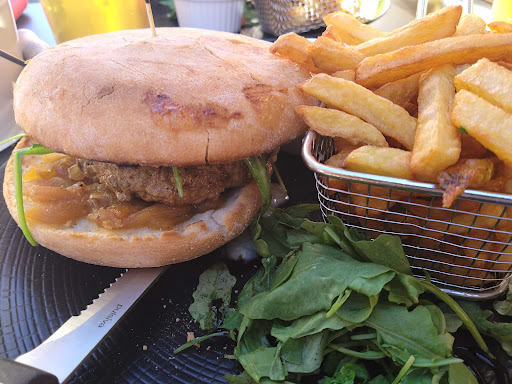 Read moreOn arrive avec une réservation, la table est prête immédiatement, un très bon point. On nous oublie un peu, un mauvais point. Je sais, c'est la saison, mais la saison, c'est un phénomène prévisible.. La marque de la bière n'est pas signalée sur la carte, il est juste mentionné : blonde, blanche, brune ou rousse. Pas terrible. Le punch est certes copieux, avec un fort goût d'alcool mais peu fruité. Nous avons pris 3 burgers, le Rossini, bien que la tranche de foie gras soit "correcte" sans plus, on cherche encore la sauce Chateaubriand. L'autre burger proposé a pleinement satisfait le convive. A 20 € le burger, on serait quand même en droit d'attendre mieux. Les desserts : Bon et copieux. Il n'y a pas de fromages sur la carte, mais on en fait une très sympathique.. Mais y a un mais, c'est le vin. Un Beaujol à 30 balles, ce n'est pas exorbitant. On nous amène un blanc dans un rafraîchissoir. On le renvoit et arrive alors un Julienas tout droit sorti du frigo. Alors là, c'est trop. Il suffirait de tellement peu de choses pour que ce resto mérite au moins **,...