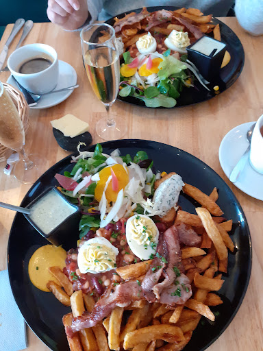 Read moreNous sommes arrivés trempés de la tête aux pieds à l’entrée du restaurant. Nous avons attendu quelques minutes avant qu’un serveur hésitant vienne à notre rencontre, nous avons été très surprises par sa question : ou voulons vous aller en terrasse ou à l’intérieur ? Alors qu’il pleuvait dehors. Nous désignons quelques tables mais le serveur nous rétorque : « ouais mais il faut les débarrasser celle-là, pff ». Il nous installe donc autre part. Point positif : la commande fut très rapide. Nous recevons nos boissons et nos gaufres (fussent-elles un peu sèches) de manière nonchalante : lancée de gâteaux bretons et de sucre. Tout cela dans une ambiance sonore agressive, un groupe de musique invisible mais bien audible. Pour finir en beauté, nous sommes encaissés avec le bac à olives...
