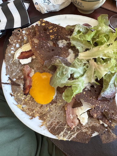 Read moreAu vu des commentaires, nous avons l'impression de ne pas avoir testé le même restaurant... Nous avions chacune commandé une galette (une complète et une gourmande) et une salade verte pour deux. Ma galette était bonne mais celle de ma soeur nettement moins (jambon de mauvaise qualité, galette avec un aspect et un goût différents). La salade verte baignait dans la sauce vinaigrette, était abîmée et très mal lavée (bonjour les petits cailloux sous les dents!) Les desserts (crêpes beurre sucre) étaient corrects, sans plus! Notre avis est loin d'être aussi dithyrambique que ceux que nous avons pu lire avant de nous y rendre. L'accueil, en revanche, était très agréable, souriant et serviable, il n'y a...