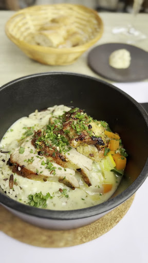 Read moreThe casseroles were just not for us. The tomato provencal sauce and rice served with both the cod and the chicken was too raw and astringent. A richer longer cook would have suited us. But it's all personal. Very warm welcome from the owner. He...