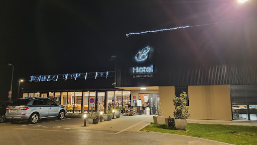 "Métro" resto dodo... Composition d aliments surgelés. Fine tranche d'une traditionnelle terrine de poisson 3 couleurs (La même qu'à la cantine) , 3 feuilles de salade et vinegrette bas de gamme avec 2 rondelles de tomate fade pour ajouter de la couleur. Nous enchainons avec le plat du jour compilation de flan de courgette et galette de pomme de terre congelés pour accompagner son morceau de poulet ou de poisson lui même congelé. Une branche de groseilles et autre fruit exotique (sans intérêts) pour apporter de la couleur et de la fraîcheur. Ou bien faire passer la pillule. Enfin, au moment de l addition la serveuse qui prétend que tout est fait maison. Laissez moi rire. Simple compilation de mauvais produits pour un repas sans goût ni âme. Y compris les tranches de pain blanc. Devant notre mécontentement du moment, La serveuse ne s est pas offusqué et nous a presque fait regretter de ne pas avoir goûté les desserts qui seraient eux aussi : "tous fait maison". 2 verres de vin, 2 entrées, 2 plats du jours et 2 cafés : 43 euros. Le goût n y est pas, l ambiance entre le service au bar et le restaurant particulier. La faute du personnel instable et de l'inflation ?? Impossible de deviner qui dirige. Je n en veux pas à cette charmante serveuse qui semble convaincu de servir une cuisine travaillée et "faite maison à 80%". Passez votre route. Un Buffalo n aurait pas fait mieux. Je ne m attendais pas à de la gastronomie, mais au moins un bon moment entre 12h00 et 14h00 pour fêter mon anniversaire en toute simplicité. Nous étions passé en famille il y a 1 an avec un autre chef en cuisine. La salle était pleine et il fallait réserver. Bien entendu, nous ne nous reverrez plus. Je n hésiterai pas à faire quelques km en plus pour me rendre à la brasserie d Intermarché à Saint claude. Ou tout est fait maison 100%. J aurai surtout le sentiment de ne pas être pris pour un pigeon et j en aurai pour mon argent. Vous représentez tout ce je déteste dans la gastronomie et vous mentez aux...