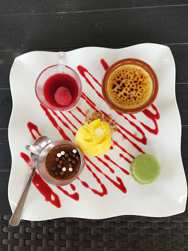 Arrivé sur place à l'heure. 20min après être installé, une personne prends enfin le temps de venir nous voir afin de nous donner la carte menu et dessert. Nous prenons une entrée en plus, une bouteille de vin ouverte et posée sur table sans demander à goûter en amont. De l'eau pétillante à température ambiante, au prix de la bouteille ce n'est pas acceptable.
