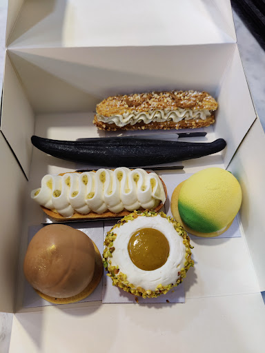 Read moreCe n'est pas la première que j'achete dans cette délicieuse boulangerie. SVP ne baissez pas le niveau. Enfin, une boulangerie pâtisserie digne de ce nom. Je n'achète pas tout le temps car je fais attention au sucre mais au moins quand j'ai envie de quelque chose de bon je peux aller à l'atelier gourmand. Vos viennoiseries au beurre et artisanales sont délicieuses. Bravo!! Pas besoin d'aller à Paris. Aujourd'hui c'était chaussons aux pommes pour moi. félicitations 👏🏽 j'ai pris deux baguettes Honorine mais je sais déjà qu'elles sont bonnes, j'en ai déjà achetées avant. Alors merci de faire honneur à l'artisanat. Mars 2023: je fais suite à mon msg pour dire que j'ai acheté dernièrement et à plusieurs reprises pour ma belle-mère qui était de passage pendant 3 mois et qui après avoir goûté vos croissants, ne voulait que ceux-là. Le bon goût de beurre et le croustillant....