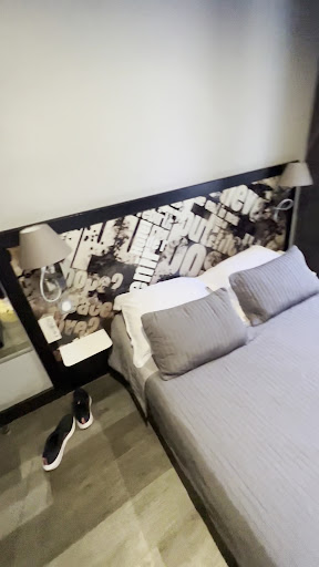 Read moreThis property was an excellent choice: it is steps away from the metro in a quiet neighbourhood. Very easy to get to all the sights, but not nearly as expensive as staying in the very centre of Paris. When we arrived, there was an English-speaking staff member on duty at the café downstairs where you check in, but this was not always the case. Since I speak a little French, this was no problem for us. Don't expect a full tourism information service! They are very helpful with local knowledge, though. The vicinity of the property is worth exploring too. There is a beautiful park right next to it, and if you walk through it and to the right a couple of blocks, you come upon a patisserie which has the best croissants I have ever tasted. There is a large supermarket close by in the next street. The rooms are tiny, but very new, and modern, and comfortable and squeaky clean. We had a room which had a shower and basin in the room, with the shared toilet in the passage. This worked very well - I hardly ever encountered anyone wanting to use it at the same time as I did. We had a view of the Sacre Coeur in the distance from our window. I never tired of looking out to see it lit late at night! The rooms are very quiet as far as neighbours are concerned. There is some street noise, of course, and since the café is downstairs, the musicians who perform there till about 10 pm can also be heard. We found that to be a bonus - free performance heard from your bed! The establishment is super efficient and well-thought out. We sat down to a lovely supper there one night, and the service is the quickest we have ever experienced anywhere. For the elderly, it should be noted that there is no lift. The staff is very efficient with getting your luggage...