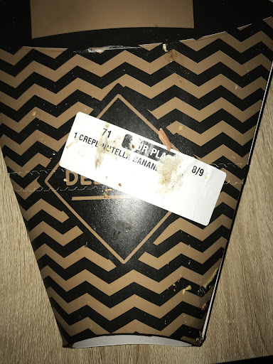 Le Nutella n'en est pas. C'est une vulgaire sauce chocolat. Ce qui est dommage car avant de commander la question avait été posée 😕 Du coup, la crêpe n'est pas bonne du tout, on a l'impression de manger une crêpe à l'eau. Il faudra la mâchouiller assez longtemps avant de pouvoir l'avaler.