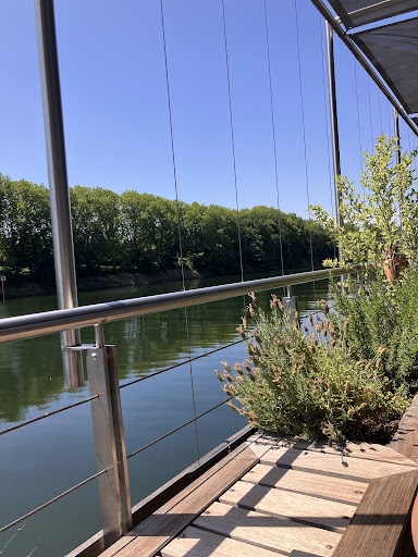 🧘♀️ Le cadre idéal pour respirer. Notre matinée a commencé par un cours de yoga sur le pont extérieur. Une douce lumière, la Seine qui coule paisiblement à quelques mètres, le bruissement des feuilles… Le calme est absolu. Une invitation à revenir à soi. Le sol en bois clair, la structure métallique épurée, les lignes sobres de la terrasse couverte offrent une ambiance zen, sans chichi. Tout est pensé pour accueillir la pratique, le regard se perd dans les reflets de l’eau. Rien ne distrait, tout recentre.