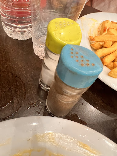 Read moreAwful- the dirtiest toilets we have ever seen. Urine all over the floor, which was like a puddle surrounding the toilet, and the toilet seat ripped off. I would never return here. Food was also disgusting and when we complained the waiter / owner then proceeded to taste the food by taking food from our plate to prove he liked it. Whilst doing so - he spat the food out into my hair as he was talking about how great he thought it was. Absolutely awful experience. I took a photo of the dirty salt and pepper pots as this just about sums up...
