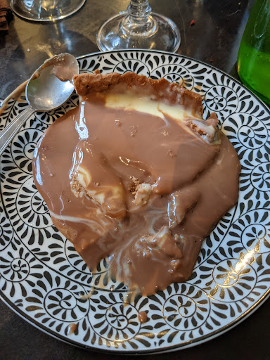 Read moreCe midi nous avons décidé de nous rendre chez ce restaurant avec des collègues. L'accueil a été tout à fait correct. J'ai pris en entrée des " roulés de saumon " qui étaient assez bons. Pour le plat je me suis laissé tenter par le magret de canard avec son gratin dauphinois. La viande était bonne, toutefois le gratin ne tenait pas bien, celui-ci était aplati dans l'assiette. Au niveau gustatif, il était simple. Tantôt dans le repas j'avais aperçu une dame déguster une tarte au triple chocolat qui m'avait l'air appétissante. J'ai donc décidé d’en commander une. Quel désarroi lorsque j'ai aperçu ma tarte (voir la photo). La crème chocolat était éparpillée dans toute l'assiette. Au premier abord je me suis dit, qu'il avait dû chauffer la tarte, mais après une bonne bouchée celle-ci était bien froide… C'est alors, qu’une serveuse ou la gérante s'est approchée de notre table en regardant la tarte. Voici ses mots " Ah apparemment, la crème n'a pas tenu, il y a eu un loupé, ils l'ont faite hier, mais comme je n’étais pas là je ne peux pas vous en dire plus. " En partant de la table, elle a énoncé " vous me direz si c'est bon". Nous nous sommes tous regardés d’un air ébahi. Madame ce que j'attendais de votre part était un désolé monsieur je vais vous changer votre tarte … À la vue de cette tarte, j'ai pris deux morceaux, et je ne l'ai pas fini. Son goût était à la hauteur de son visuel. Immangeable !