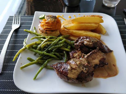 Read moreLe restaurant est très calme. Il a l'air peu accessible de prime abord mais je vous conseille d'y entrer. Les plats sont excellents. J'ai pris le magret de canard avec accompagnement purée aux deux patates douces et salade verte pour 26 €. Excellent. La purée de patate douce était très fine et goûteuse et la vinaigrette qui accompagnait la salade verte, un délice. La viande était cuite comme je le voulais (saignante). Magret de 350 grammes... En ce qui concerne le service, le serveur était professionnel et efficace. L'ambiance de ce restaurant est très calme. Si on aime les restaurants tranquilles, c'est l'endroit parfait. La décoration est sobre. Je reviendrais goûter le poisson car c'est...