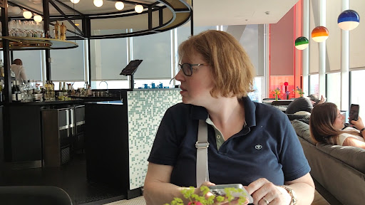 Read moreJ'ai été assez déçu du lieu qui n'est pas exploité à la hauteur de son potentiel et de sa superbe vue. Au niveau du décor, ça ressemble plus à un restaurant d'entreprise. DÚs l'arrivée sur le palier avec cette moquette de bureau. L'ambiance générale est froide et sans charme. L'éclairage est blafard voir sombre. Pour lire, la carte j'ai dû prendre ma lampe de téléphone. Dans un coin, il y a quelques pauvres plantes maigrichonnes qui m'ont fait de la peine.