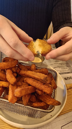 Read more1ere fois depuis l'ouverture que j'y allais, j'attends toujours que les choses se mettent en place. Déçu de l'ambiance du resto, simple planche de bois, quelques petites déco, pas vraiment de style. Le burger que j'ai choisi pas terrible, le buns était trop imbibé de liquide, jus de tomate, jus de viandes, il ne se tenait pas du tout, la tranche de pain inferieure complètement aplati et absente, le fromage cheddar, pas top, pas de goût. Burger très moyen, les frites parcontre jai aimé. Je n'y retournerais certainement pas même pour y essayer un autre plat de la carte. Au niveau service on ne nous a même pas proposer le menu du jour, et la serveuse avec sa polaire juste correcte. Attention ce 'et quemonavis, chacun doit se...