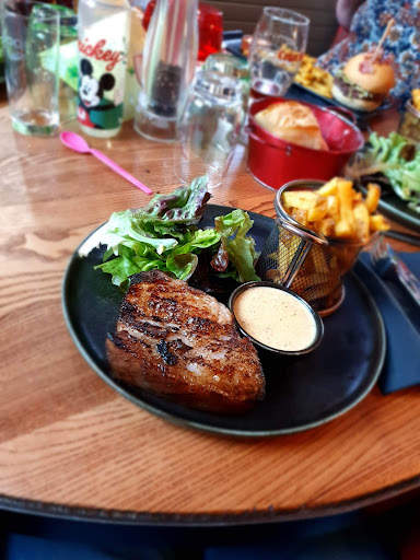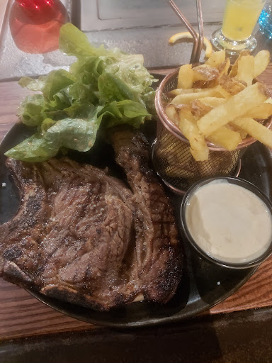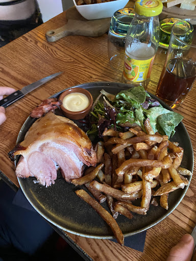 Read moreAvis mitigés pour nous... Avons dîné en famille, l'un de nous ravi de son hamburger au poulet, et de ses churros au chocolat chaud. Le 2ème a pris la pièce du boucher, un magret de canard, pas exceptionnel pour le prix 🫤. Quant à moi, un burger végétarien, bon mais sans plus, avec une montagne de salade dedans. Servis avec des frites maison mais trop peu. Et dommage on s'est rendu compte en partant qu'on ne nous avait pas proposé le plat du jour, sur la petite tablette posée de table en table, un camembert chaud style tartiflette qui nous aurait bien plu. Le gros problème pour nous aura été l'attente...30 min avant qu'on nous propose un apéro... 2 h de l'arrivée au départ... Trop long! Mais si je mets une mauvaise note c'est surtout parce qu'il est impossible de modifier un plat! Sur la carte ils proposent en dessert une brioche perdue servie avec des framboises et j'aurais préféré avec une boule de glace vanille, et bien non pas possible😐 bon, alors un café gourmand mais en modifiant les mini desserts car 2 sur 4 ne me plaisaient pas, là encore impossible 🤔 bon, alors une crêpe (je précise bien sans sucre) avec une boule de glace dessus, j'ai bien eu ma crêpe SUCRÉE 🥴 avec ma boule de glace dans un plat a côté... Pas grave, je pousse le sucre et mets ma glace sur la crêpe, mais là grosse déception, la crêpe pas fraîche, j'hésite entre carton ou plastique pour décrire la sensation en bouche 🥺 sinon c'est vrai que l'ambiance est sympa, le patron accueillant, les serveuses sympa et débordées, dans l'ensemble ce n'était pas une expérience top pour nous. Rapport qualité prix...