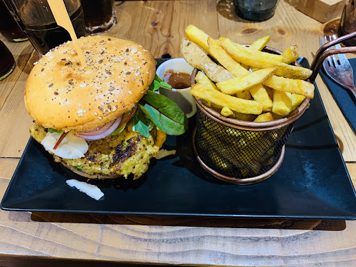 Read moreAvoid if you can. I ordered a bottle of water and we ordered 2 burgers. Our bottle of water came, with no glasses. My wife use the happy cow app and it said they have vegan options, they didn't. We find out after ordering. They offered her fish... When my wife took the salad, it came with a cream dressing and mayonnaise. My salmon burger arrived, cold. We asked if it should be hot or cold and the waitress said hot. I returned the burger, asked for glasses so that we could finally drink. She told us the burger was removed from the bill, but no apologies. The fries were good, if not salty. I...
