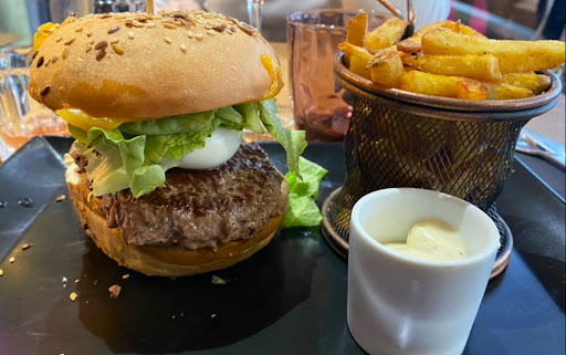 Service staff very kind, but not experienced enough. Waiter kept us waiting 20 minutes before even saying hello. A “I’ll be with you shortly” and a smile is a minimum for me. Once seated it was another 15 minutes before he acknowledged I was ready to order, but he proceeded to clean another table, for which no one was waiting. Second more confident waiter sold us a lovely bottled beer from a local brasserie. I took the signature burger- for me there was too much in it. I like a burger I can pick up and eat with my hands! I also think for a restaurant whose speciality is burgers, the customer should be asked quelle cuisson/how they would like the...