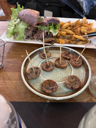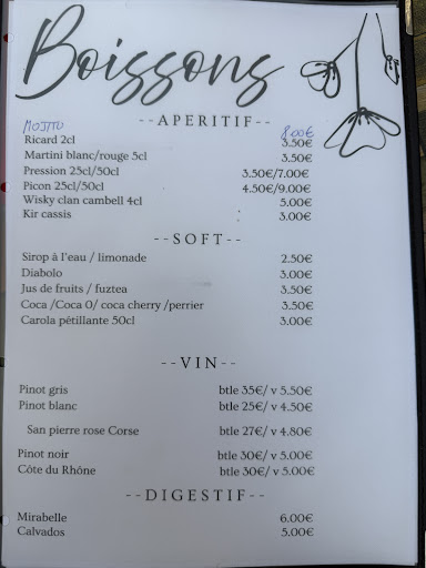 Read moreAlors que dire... Il est rare que nous soyons déçus à ce point... Je ne m'explique pas la moyenne des avis, ou c'est que les contributeurs ne savent vraiment pas ce qu'est une cuisine de qualité ! Nous nous sommes fiés à ces avis, quelle erreur... Service long, en même temps les 2 pauvres jeunes faisaient ce qu'il pouvaient pour faire face à leur charge de travail... Parlons de la cuisine. Mon épouse a pris une entrecôte et moi un filet mignon de veau, plats en suggestion. Le prix de l'entrecôte n'était pas indiqué, mea culpa, nous aurions dû demander, cela nous aurait évité la très mauvaise surprise de l'addition. En effet, une fois la graisse retirée cela ne valait certainement pas plus de 36 € !!! Mon filet mignon quant à lui était gorgé d'eau et par sa taille ne valait pas non plus plus de 26 €... La sauce qui à l'aspect devait être à la crème était totalement insipide... Le pire était sans doute les frites, molles et gorgées de matière grasse, collées entre elles, à se demander si elles n'avaient pas été réchauffées... Le dessert (crème brûlée à la myrtille) était un peu mieux, mais sans être excellent. Addition totale pour 2 apéritifs, 2 plats, un 1/2 litre d'eau plate et 2 desserts : 85,70 €, j'ai failli faire un malaise !!! Nous avons maintes fois mangé dans des établissements de meilleure qualité et quantité pour à peine plus de la moitié de ce prix ! De plus, mon "au revoir" après avoir payé est resté lettre morte auprès du personnel de service. Piège à touristes dans tous les sens du terme, les 2 étoiles sont surtout pour le cadre qui est le seul...
