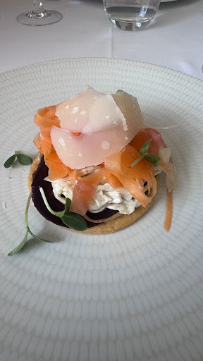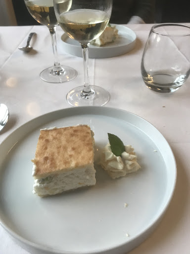Read moreAccueuil chaleureux, vérification de la passe sanitaire, pas de masque. Étant les premiers arrivés, nous avons le choix de la table. En moins de 15 minutes on nous demande 3 fois si nous avons fait notre choix, sans recevoir aucune explication du menu. Sentiment d'être pressés de choisir. Nous avons bien mangé, mais ce fut malgré tout une expérience décevante. J'ai choisi une entrée avec homard et crevettes sauvages mais les saveurs étaient dominées pas une mousse (Tiramisu disent ils???) de tomates. Assiette généreuse et bien garnie malgré tout. Ensuite filet de canette cuit parfaitement avec une délicieuse sauce mais la purée de pois un peu lourde. Il manquait des légumes plus léger a mon goût personnel. Le chariot de fromage est très généreusement garni et offre une grande variété mais il est difficile de faire un choix, les fromages n'étant pas ordonnés en force de saveur. La portion servie et toutefois très généreuse. Le service est très professionnel mais manque un peu de chaleur et personnalité. La carte des vins est très élaborée mais l'offre de vin au verre limitées. Une offre accompagnement vin et mets serait bienvenue.