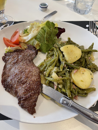 Read moreUn pti restau de village pour déjeuner un plat du jour. La bavette de 120gr à 17e cest quand même un poil abusé. Et dommage que le serveur n'ait que des glaces "cornetto" à proposer en dessert. C'est quand même pas compliqué de faire une tarte, une crème caramel ou même un fromage blanc/confiture... Pas sûr que j'y retourne si je repasse...