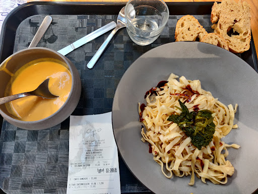 Read moreRestaurant-cantine en plein de cœur de l’espace dédié à la biennale de Saint-Étienne. Super accueil de l’hôtesse, qui nous a expliqué toute la démarche responsable de leur cantine ( récupération des fruits-légumes abîmés, moches donc invendables dans les commerces traditionnels, que du local, etc). Chaque midi un menu, on prends au choix l’entre, plats ou/et dessert. Leur système marche comme un self, on prend un plateau, et à la queuelele pour prendre nos assiettes. Seule petite truc qui m’a un peu froissée : j’ai demandé au cuisinier de remplacer la semoule par des légumes, son responsable n’avait pas l’air content de la quantité sur mon assiette. Et mon amie, a eu une assiette dosée au minimal comparé aux restes des clients. Les prix sont assez élevés aussi, j’étais étonné 😧 Mais le décor et l’environnement...