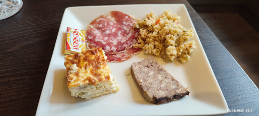 Nous avons pris le menu à 17€ comprenant : Le buffet à volonté (quiche, salade, pâté, charcuterie, taboulé...) qui est très bon Le plat du jour (bœuf bourguignon et sa purée maison ce jour-là) Un bon dessert maison