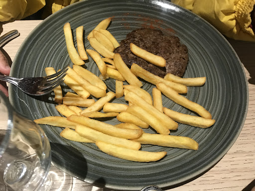 Read moreServeuse mal aimable et très très préssente. Mon fils de 7 ans demande poliment quelles sont les sauces pour mettre avec ses frites. Elle lui répond sèchement qu'il n'y a pas de sauce... Sauf qu'elle propose une sauce au bleu à la table de dernière juste après.... Plats tout de même très bon sauf que les frites sont des frites banales surgelées... Attention pas de menu enfant mais un plat steak frites à 9 euros. A cela il faut ajouter un dessert "adulte". Mon fils s'est encore pris une réflexion quand il a posé la question. Au moment du dessert on nous dit qu'il n'y a pas de glaces encore une fois sur un ton très désagréable. Sauf que cela représente plus de la moitié de la carte des desserts... L'autre moitié étant composée de crêpes ou 1 dessert du jour (tarte cassis, framboise annoncée par la serveuse à notre table et tarte groseille, framboise annoncée à une autre table....). Les crêpes sont sèches et surtout servies pliées en 4 sans rien à l'intérieur avec une cuillère de Nutella jetée au milieu sans même qu'elle soit étalée.... A nous de le faire. Aucune déco ou chantilly.... Mauvaise expérience. Nous ne recommandons pas ce restaurant ni cette serveuse qui apparemment n'aime pas...