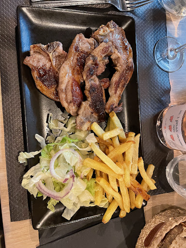 Read moreTrès déçu aux vues des notes précédentes. Je ne compte pas comment les gens notent: un peu de clairvoyance et de d’honnêteté. On avait réservé pour 5, et nous voilà avec notre table à l’extérieur complètement mouillée : solution de secours: s’entasser à 5 sur un banquet à l’intérieur prévue pour 4. Du coup, près du pass: beaucoup d’amateurisme (là service qui demande ce qu’il reste comme plat… on rêve)… on a donc pu apprécier le fonctionnement: les enfants servis très vite qui avaient fini leur plat avant que les adultes soient servis…. Pour aller aux toilettes il faut passer par les cuisines: toilettes très glauques (on vous épargne la photo), pas d’essuie main… hygiène très limite. La serveuse part à 22h laissant le chef seul… bon… les plats: quelconques (les frittes sont meilleures chez mac do désolé mais froides,molles et baignant dans la graisse c’est pas des frittes: j’aurai préféré des pommes sautées). La viande correcte pourtant le plat avait l’air appétissant (voir photo). Le Saumon et ses légumes (riz et carottes râpées) moins que quelconque. On en est resté la: pas de dessert puisqu’il manquait la moitié de ceux à la carte! Les mignardises des enfants, c’était juste un glace aux bonbons… Finalement seul le vin rosé des 3 petits cochons roses sauve la mise et à permis de gagner une étoile! 3 cochons: 3 étoiles. Pour le reste, ne vous fiez pas aux étoiles. A croire que c’est les amis et les...