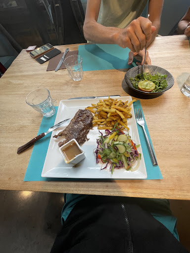 Read moreDéco intéressante mais banquettes inconfortables. Nous avons pris 2 tartares de 180 gr façon italienne que nous avons demandé à mélanger nous-mêmes. Nous avons demandé les sauces et au lieu d'huile d'olive et vinaigre balsamique (produits typiquement italiens), on nous a amené de la Worcestire et du Tabasco... Les frites sont trop grasses et molles : dommage. Notre fille a pris un tataki de thon. Elle l'a trouvé bon mais les frites, oubliées et réclamées de suite, n'ont été amenées qu'à la fin de son plat. Une crêpe au sucre pour notre fille et 2 cafés gourmands pour nous ont terminé le repas. Ce repas, arrosé de 3 cocas, nous a coûté 84 euros. Nous avons trouvé ce repas simple mais pas plus réussi que cela. Le prix nous semble élevé. Nous nous efforçons de rédiger une critique sincère que vous trouverez constructive,...