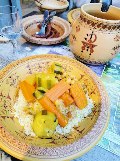 Nous avions réservé une table pour 20h. Une fois arrivé à l'heure prévue et après 30 minutes d'attente à notre table, nous demandions s'il serait possible de prendre notre commande. La serveuse semblait contrarié par notre demande et nous demande notre pass sanitaire alors qu'elle ne l'a pas demandé à d'autre clients auparavant. Elle répond que si elle prenait notre commande maintenant, elle n'était pas sûr de nous servir dans les temps.. Nous étions dans l'incompréhension devant cet argument. Nous aurions préféré qu'elle nous dise qu'elle était toute seule pour gérer l'ensemble des tables du restaurant ainsi que la caisse, nous aurions compris. Une fois la commande passée nous mangions dans les temps. Un petit bémol concernant notre plat principal qui n'était pas le bon (tajine accompagné de pruneaux/abricot alors que nous avions demandé un accompagnement olive/citrons confits) mais avons décidé de ne pas faire de remarque concernant ceci pour évité d'être dans la confrontation. Nous avons décidé de ne pas prendre de dessert car nous avions entendu à une table plus loin qu'il n'avait plus de thé à la menthe et qu'ils n'avait qu'une seule pâtisserie marocaine. C'est très dommage car les plats étaient vraiment très bon et de qualité mais le service...