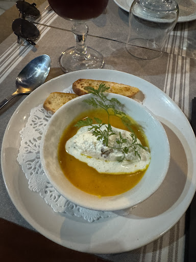 Read moreNourriture très bonne dans un cadre agréable (en terrasse au calme). Service sympathique mais complètement à la rue. -Les entrées sont arrivées avant les apéritifs. -Les plats sont arrivés en décalés, à un point que les trois premiers avaient fini le leur quand les deux derniers plats sont arrivés. 30mn pour obtenir une carafe après trois demandes.