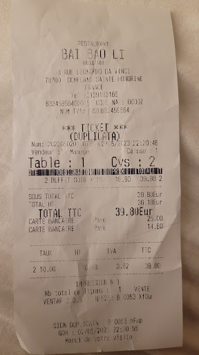 Bai Bao Li "restaurant à volonté" est à proximité du cinéma, zone des Boutries, la station RER la plus proche est Neuville-Université (Conflans Fin d’Oise un peu plus éloigné). Il y a des parking gratuits sur place et alentours. Ouvert 7j/7 Plage horaire 12-14h30 19-22h30 vendredi et samedi 23h. Quasiment aucune attente et pourtant fort fréquenté, les tables sont accessibles de suite. N’hésitez pas à insister pour choisir votre emplacement.