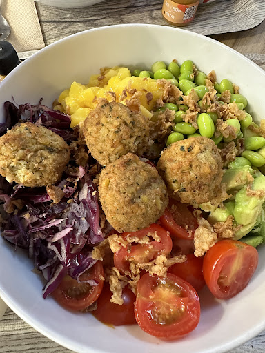 Résultat ? Un vrai régal ! 🍚 J’ai composé mon poké avec l’aide de cette jeune femme, qui m’a très bien guidée et conseillée — j’ai même pu goûter les produits avant. Vraiment une pépite de petit lieu, aussi bon...