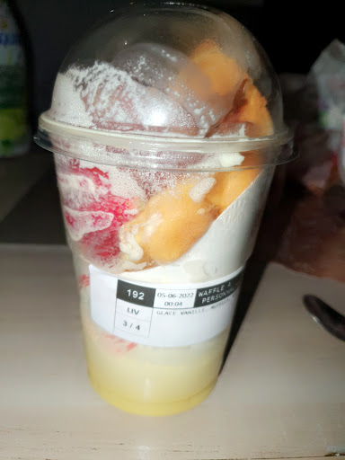 Read moreNous avons passé commande à minuit on nous explique qu'il y a entre 40 et 50 min d'attente or au bout de plus de 1h on décide d'appeler le restaurant pour demander où notre commande en est. apparemment il y a eu un problème avec le livreur il faut attendre son appel. quelques minutes plus tard on reçoit un appel du livreur qui est en bas de chez nous on va chercher la commande et en ouvrant surprise la glace sur la waffle est complètement fondue sur le papier et en ouvrant la gauffre on s'aperçoit que la pâte est mal cuite et que le kit kat est complètement collé au nutella pas top. pour la crêpe salée je me retrouve avec des pommes de terre au lieu d'oignons frits et de la sauce samouraï à la place de la chose...